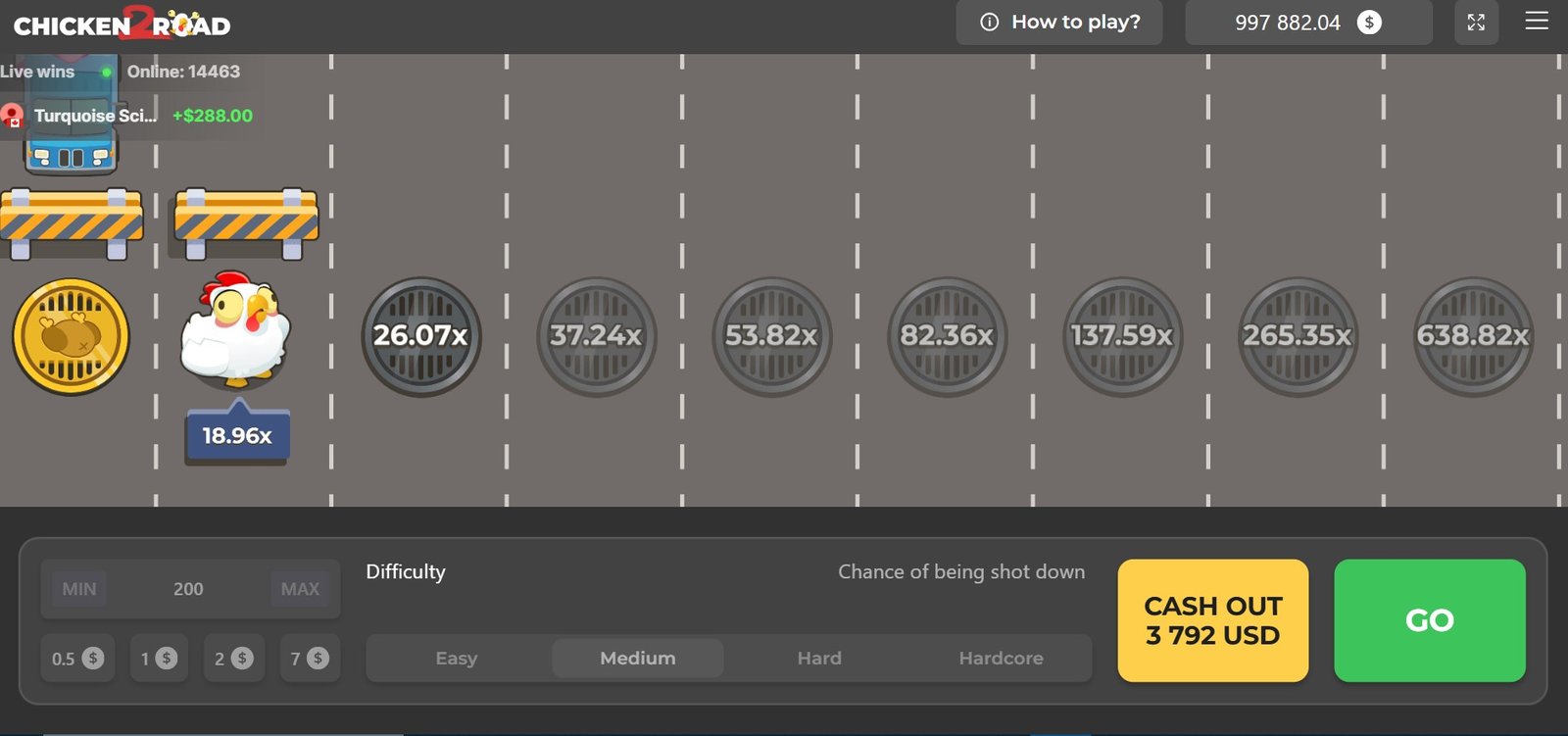 Difícil | 22 carriles | Entre 1,18x y 62.162,09x |